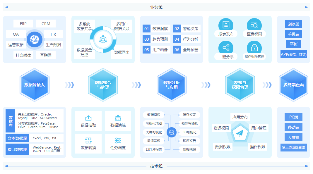 BI作為企業(yè)轉型數字化最高效的方式之一,受內外部環(huán)境影響,對于廣大企業(yè)來說,采用具有國內知識產權的產品和技術更為踏實。而BI國產化替代的關鍵在哪里呢?一方面,要實現國產軟件廠商產品、技術之間的適配,從而完成信息化的系統(tǒng)性替代,全部遷移到國產軟硬件產品中來;另一方面,BI產品本身的便捷性,方便用戶更易習慣和使用。